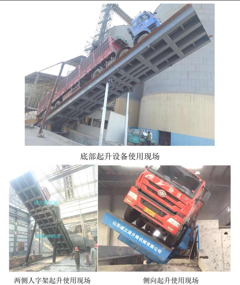 山東誠立源升降機械有限公司的液壓側翻後翻自動卸車機廣泛用於糧油加工,飼料加工,煤炭、水泥、造紙製漿,港口、電廠、焦化廠、車站、碼頭貨廠提供了一種新型液壓翻板卸車設備。產品經濟實惠、技術先進、高效可靠。
