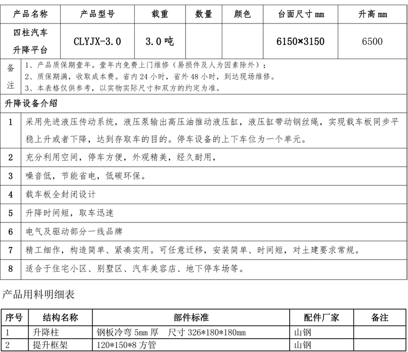 該(gai)產(chan)品(pin)是(shi)為(wei)汽(qi)車(che)量(liang)身(shen)打(da)造(zao)的(de)升(sheng)降(jiang)平(ping)台(tai),升(sheng)降(jiang)平(ping)穩(wen),操(cao)作(zuo)簡(jian)單(dan),承(cheng)重(zhong)量(liang)大(da),安(an)全(quan)性(xing)能(neng)較(jiao)高(gao),且(qie)該(gai)平(ping)台(tai)的(de)使(shi)用(yong)壽(shou)命(ming)較(jiao)長(chang)。此(ci)產(chan)品(pin)的(de)可(ke)調(tiao)節(jie)螺(luo)杆(gan),保(bao)證(zheng)了(le)平(ping)台(tai)的(de)水(shui)平(ping),保(bao)證(zheng)汽(qi)車(che)的(de)平(ping)穩(wen)升(sheng)降(jiang),結(jie)構(gou)外(wai)形(xing)美(mei)觀(guan)。