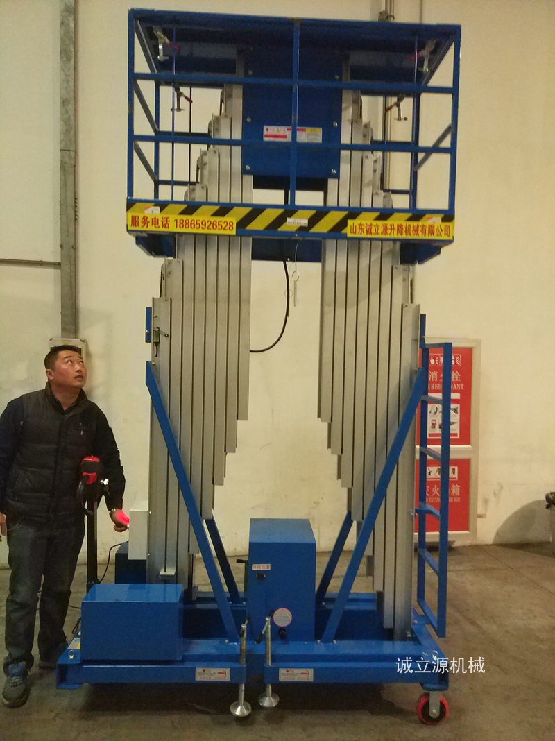 六桅柱豪華鋁合金式升降平台 :zhengticaiyonggaoqiangdulvxingcaijingzhierchengyouyuxingcaiqiangdugao,caiyongliuweizhushijiegou,wendingxingjihao,yunzhuanlinghuo,zaizhongliangda,pingtaimianjida,tuixingfangbian。taqingyingdewaiguan,nengzaijixiaodekongjianneifahuizuigaodejushengnengli。shishengjiangtaidepianzhuanyubaidongjixiao。gaishengjiangjiguangfanyongyuchangfang、賓館、大廈、商場、車站、機場、體育場等。可用作電力線路、照明電器、高gao架jia管guan道dao等deng安an裝zhuang維wei護hu,高gao空kong清qing潔jie等deng單dan人ren工gong作zuo的de高gao空kong作zuo業ye。整zheng體ti采cai用yong高gao強qiang度du的de鋁lv型xing材cai精jing製zhi而er成cheng,動dong力li經jing過guo液ye壓ya泵beng站zhan帶dai動dong鏈lian條tiao傳chuan動dong能neng夠gou上shang下xia操cao作zuo,是shi高gao空kong作zuo業ye變bian得de方fang便bian快kuai捷jie!