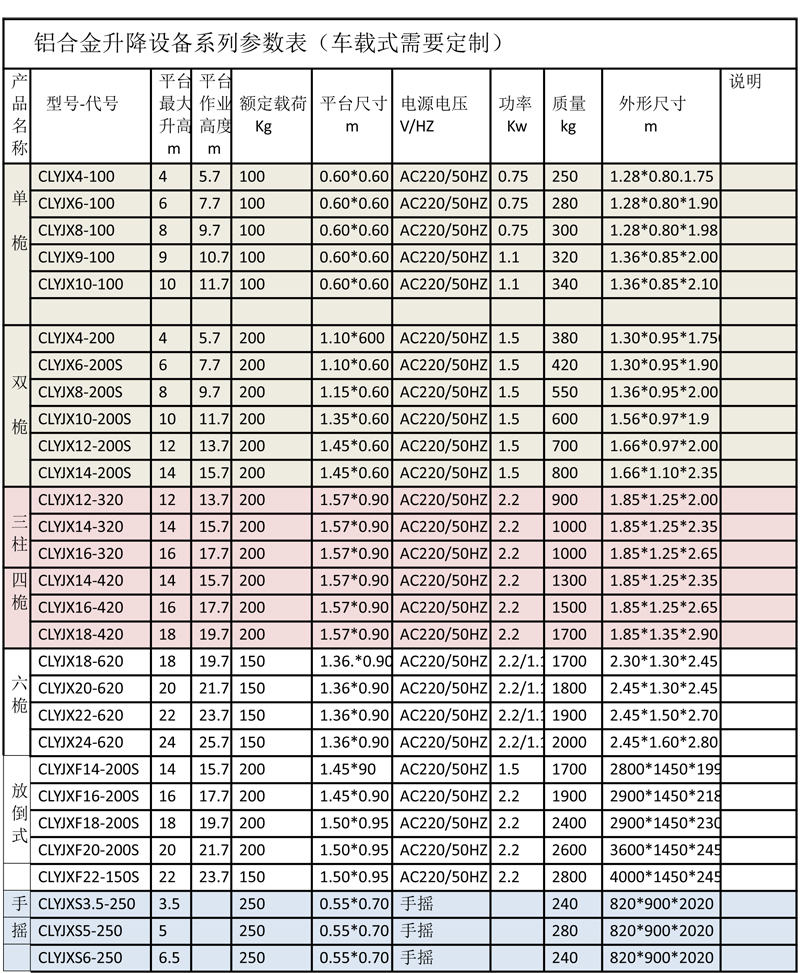 六桅柱豪華鋁合金式升降平台 :整zheng體ti采cai用yong高gao強qiang度du鋁lv型xing材cai精jing製zhi而er成cheng由you於yu型xing材cai強qiang度du高gao,采cai用yong六liu桅wei柱zhu式shi結jie構gou,穩wen定ding性xing極ji好hao,運yun轉zhuan靈ling活huo,載zai重zhong量liang大da,平ping台tai麵mian積ji大da,推tui行xing方fang便bian。使shi升sheng降jiang台tai的de偏pian轉zhuan與yu擺bai動dong極ji小xiao。該gai升sheng降jiang機ji廣guang泛fan用yong於yu廠chang房fang、賓館、大廈、商場、車站、機場、體育場等。可用作電力線路、照明電器、gaojiaguandaodenganzhuangweihu,gaokongqingjiedengdanrengongzuodegaokongzuoye。zhengticaiyonggaoqiangdudelvxingcaijingzhiercheng,donglijingguoyeyabengzhandaidongliantiaochuandongnenggoushangxiacaozuo,shigaokongzuoyebiandefangbiankuaijie!