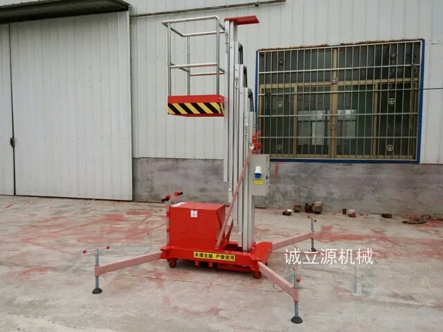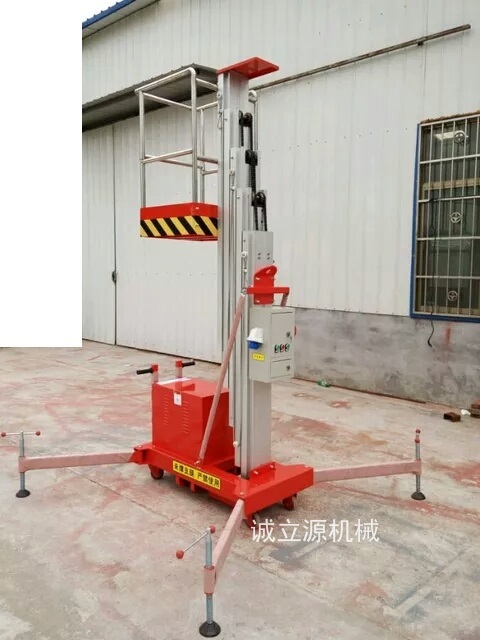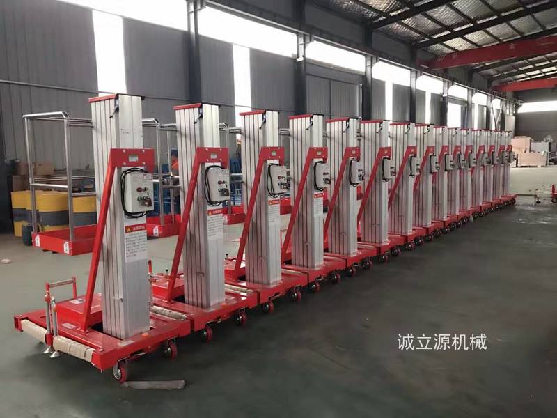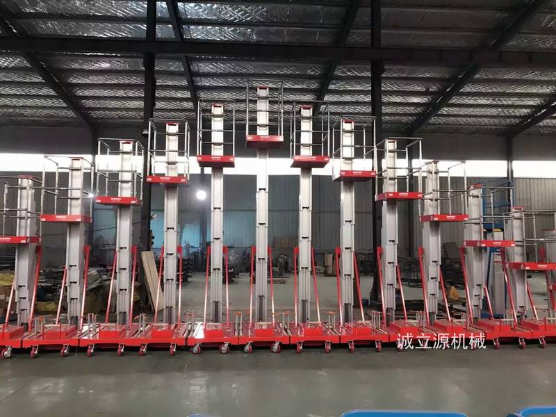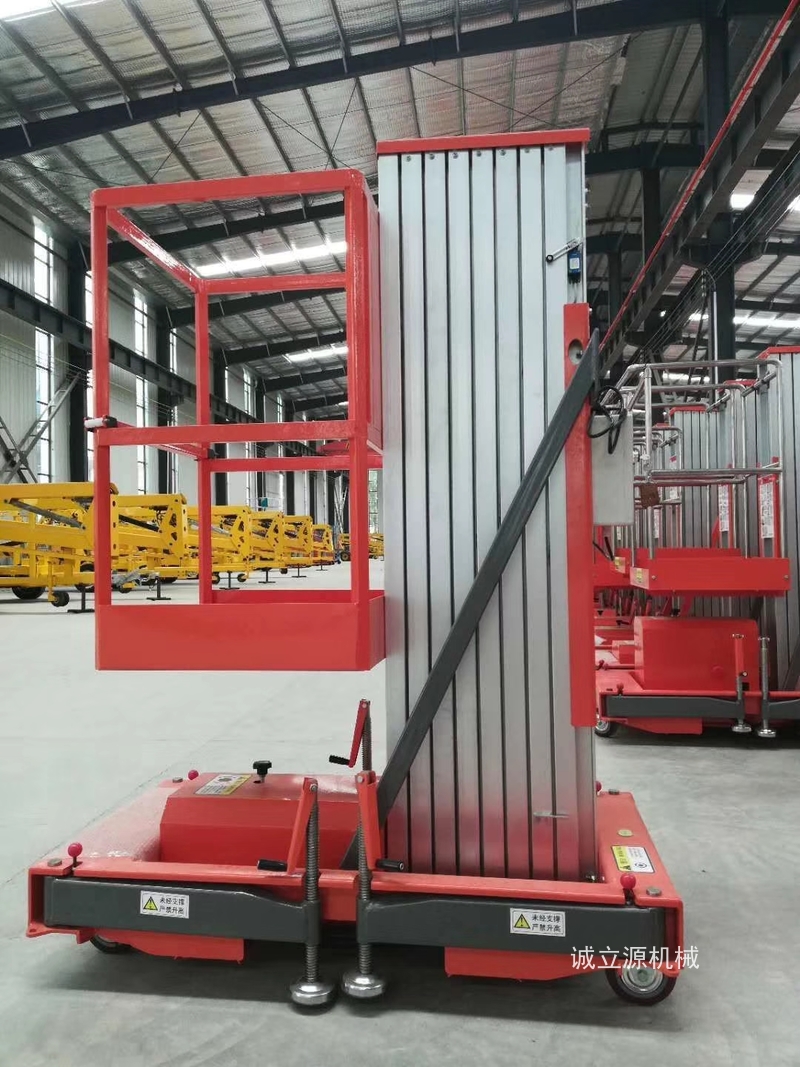 單桅柱豪華鋁合金式升降平台 :該係列產品為室內型,廣泛適用於星級酒店,大型超市等各行業大廳、廠房內的高空作業,具有升降平衡,操作方便,能進入一般門廳,可隨意進出電梯且耗電少、無汙染、工作時不傷地麵,可用於貼牆工作及探出作業,工作無死角。單立柱式鋁合金電動升降機配上龍門跨架附件,非常適合於影劇院、會堂、教堂等的維修工作。該龍門跨架組裝容易,操作省力,移動靈活,可跨越高度達 1.1m的固定座椅等障礙物,並可在台階上穩定作業。 高強度矩形鋼管製作, 剛性、穩定性好。 配有萬向腳輪,機動靈活。 兩端架跨距可調,能適 用於跨越不同障礙物的要求。兩端架垂直可調,可用於一定坡度的斜麵或台階上作業。