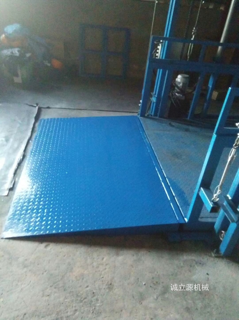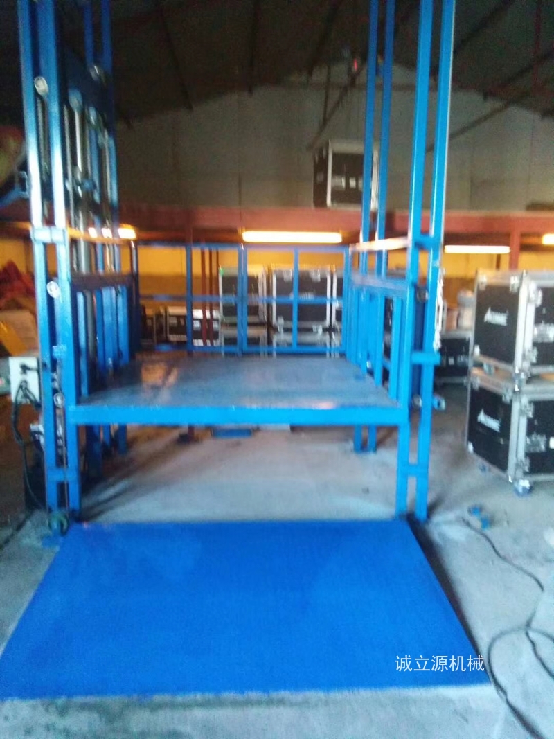 導軌式升降平台是一種能上下運輸貨物的升起機械,也叫液壓貨梯、升降機、提升機,是起重升降設備。貨梯的升降高度從一米到二十米不等,載重從 100kg 到 100 噸。