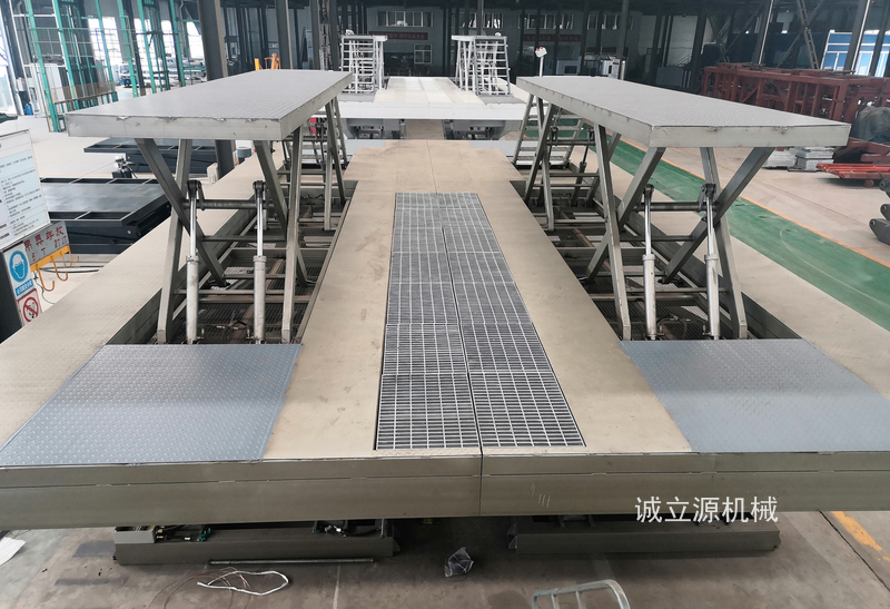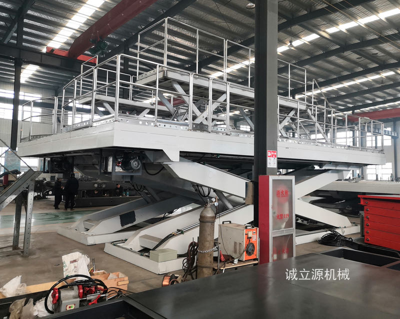 重型液壓升降平台主要根據用戶的要求設計製造,多數安裝在基坑內,疊落狀態時與地麵相平,方便於此麵通行。常見載重:3.0-200 噸,起升高度:1-10 米。本設備廣泛用於生產流水線、倉庫、商場、停車場、等特種行業。