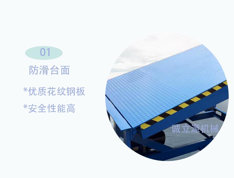 登車橋(裝卸貨升降平台)登車橋分為固定式、移動式兩種,采用國產/進jin口kou液ye壓ya係xi統tong,它ta的de主zhu要yao作zuo用yong是shi在zai貨huo台tai與yu運yun輸shu車che輛liang之zhi間jian搭da起qi一yi座zuo橋qiao,使shi叉cha車che便bian利li行xing駛shi,達da到dao高gao效xiao裝zhuang卸xie貨huo目mu的de。該gai設she備bei一yi端duan與yu貨huo台tai等deng高gao,另ling一yi端duan搭da在zai車che廂xiang後hou沿yan,並bing能neng根gen據ju不bu同tong的de車che型xing及ji裝zhuang車che過guo程cheng中zhong車che廂xiang的de高gao低di變bian化hua,自zi動dong調tiao整zheng高gao度du。該gai產chan品pin可ke根gen據ju用yong戶hu的de不bu同tong需xu要yao,在zai外wai形xing尺chi寸cun、承受載荷等方麵特殊設計。