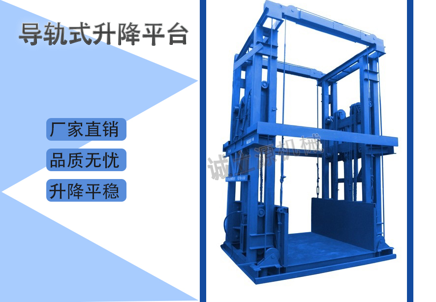 導軌式升降平台簡介:導軌式升降平台分為單軌(俗稱兩柱)和雙軌(俗稱四柱)導軌式升降平台是一種能上下運輸貨物的升降機械,又稱液壓貨梯、升降機、提升機,是起重設備係列產品。貨梯的升降高度從0.5米到30米不等,載重從100kg到150噸不等。導軌式升降平台主要用各種工作層間貨物上下運送;立體車庫和地下車庫二、三層高樓間、無法開挖地坑場所、頂層高度不能到達要求的場合等比較難解決的狹小空間,本公司將竭盡全力為你打量身打造高效率的送貨平台,產品液壓係統設置防墜、shangxiacengmenhudongliansuo,geloucengheshengjiangtaigongzuotaimianjunkeshezhicaozuoanniu,shixianduodiankongzhi。chanpinjiegoujiangu,chengzailiangda,shengjiangpingwen,anzhuangweihujiandanfangbian,shijingjishiyongdediloucengjiantidaidiantidelixianghuowushusongshebei。genjushengjiangtaideanzhuanghuanjingheshiyongyaoqiu,xuanzebutongdekexuanpeizhi,kequdegenghaodeshiyongxiaoguo,benchanpinzhuyaoyingyongyuhuagong、高溫、高壓、電廠、核工業基地、炸藥等防爆企業。最大承載100噸,實現多點控製,上下樓層互動聯鎖,達到安全使用;